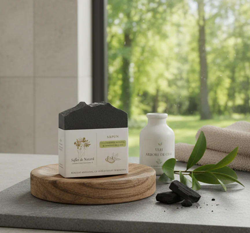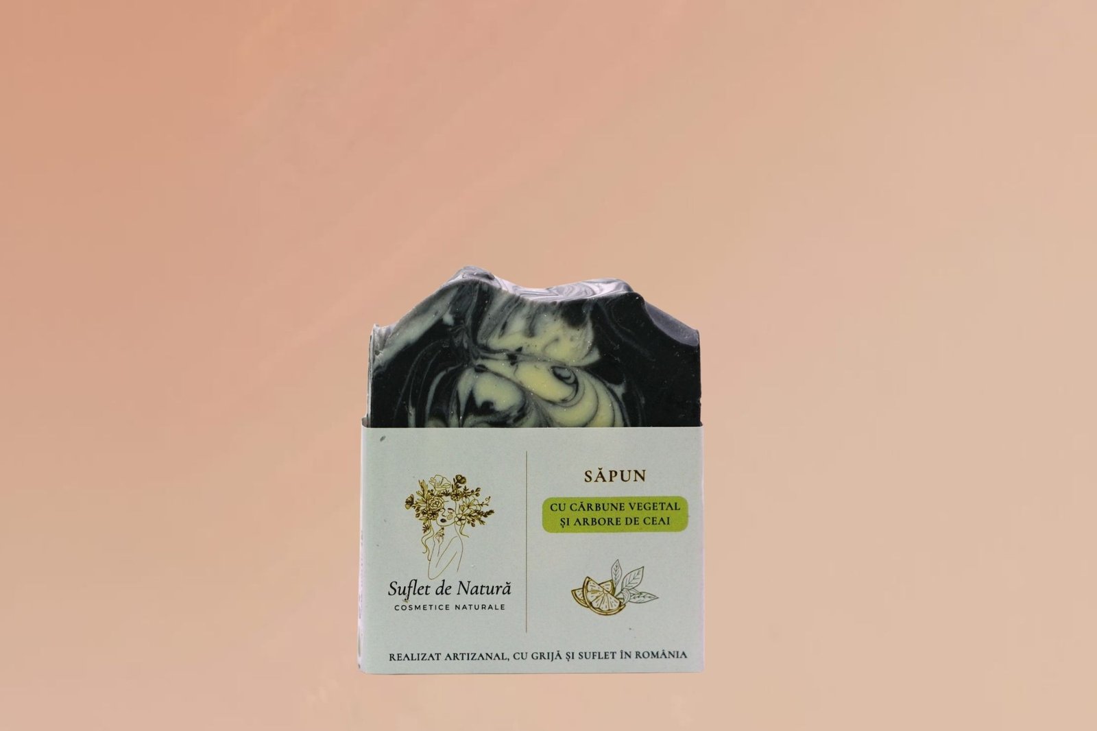 Săpun natural cu cărbune vegetal activ, mentă și tea tree
